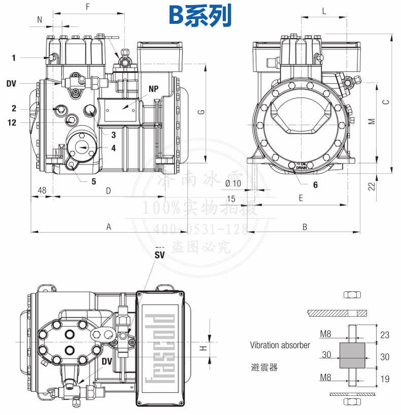 批發零售Frascold/富士豪半封閉活塞壓縮機B1.5-10.1Y,額定功率1.5HP,最大功耗1.1Kw,意大利原裝進口,假一罰十。